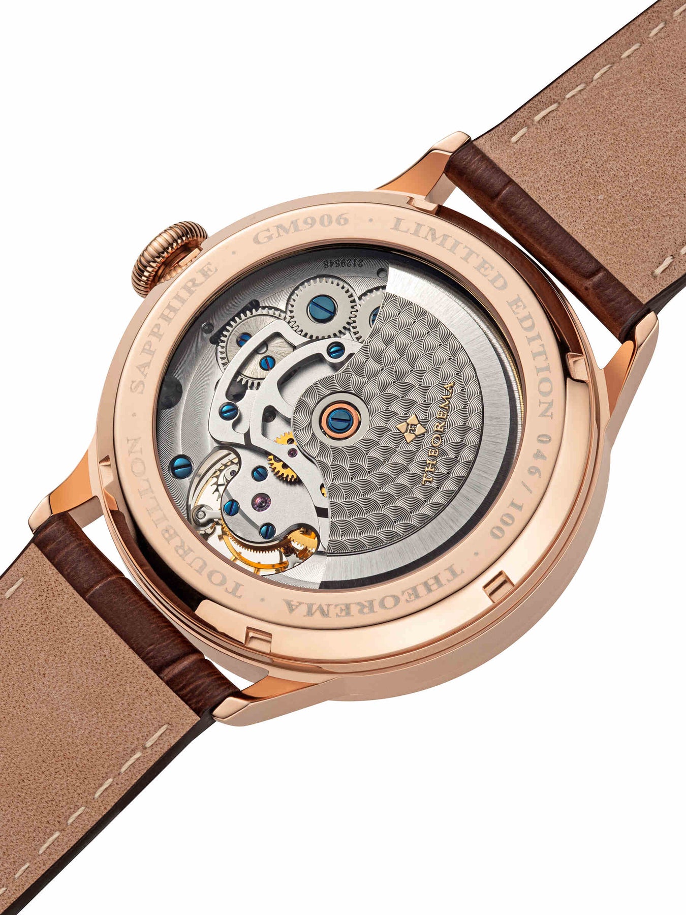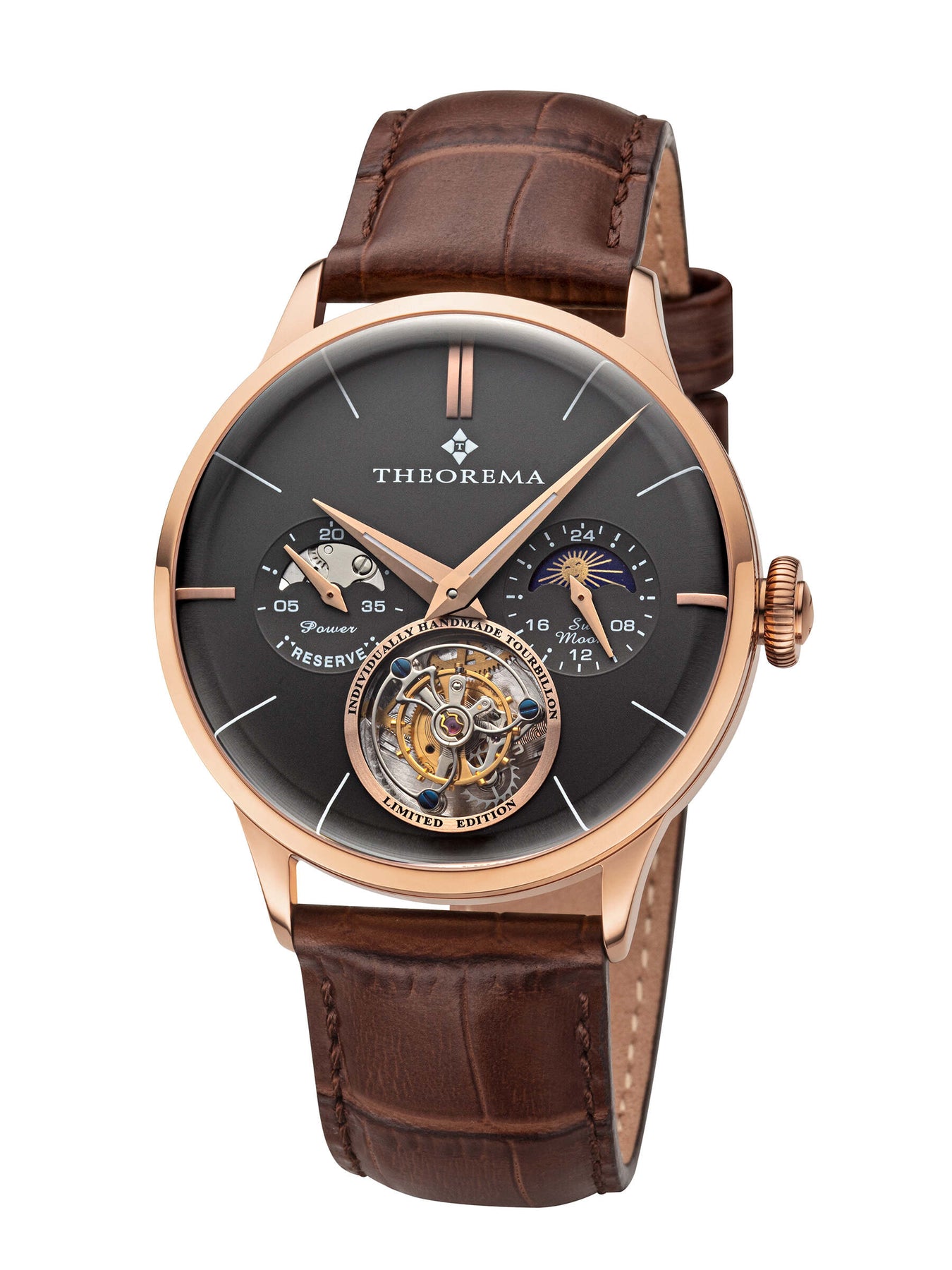 The Bern Theorema Automatic Co-Axial Tourbillon is a remarkable execution of a horological feat, where the tourbillon appears to hover within the dial, offering a dynamic visual spectacle.